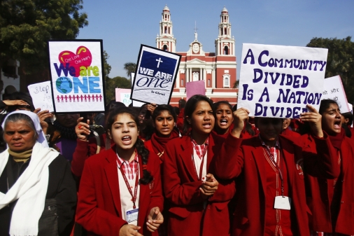 According to NDTV, Christian groups were apparently marching through the streets in protest of the recent attacks received by the churches. The protesters were holding crosses and rosaries and holding up posters that said "Stop violence against Christians" and were chanting "We want justice."
