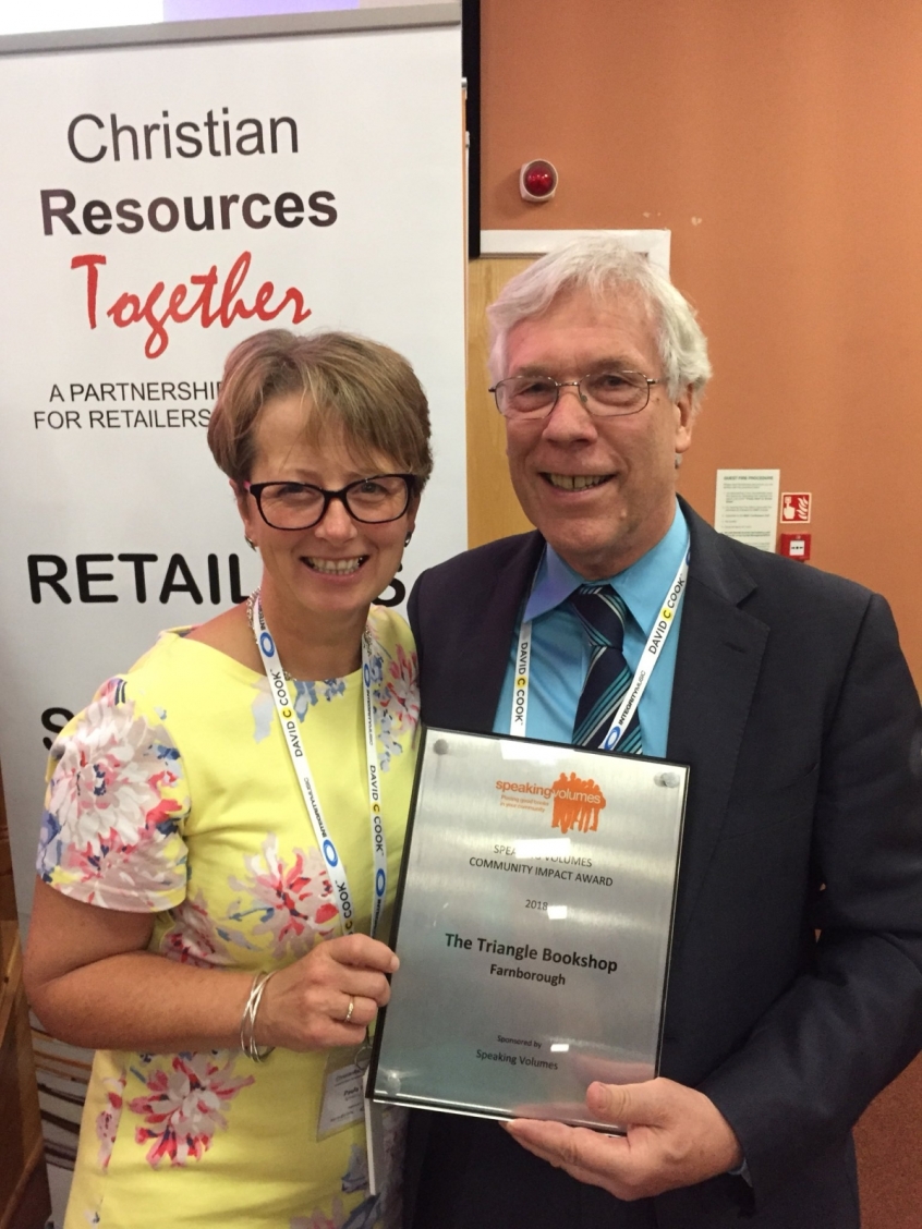 Speaking Volumes, a grant provider for quality Christian books for libraries and schools, sponsor an award. They tweeted: 'Congratulations to Paul Taylor of Triangle book shop for winning our Community Impact Award.'