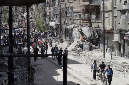 Once home to around 150,000 refugees, Yarmouk has been caught between government forces and Syrian insurgent groups including Islamic State's rivals such as al Qaeda's Nusra Front since 2012.