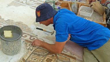 It served as the floor of a church dating to the Byzantine period. The mosaic was removed from the site for conservation and was recently returned to its permanent location.