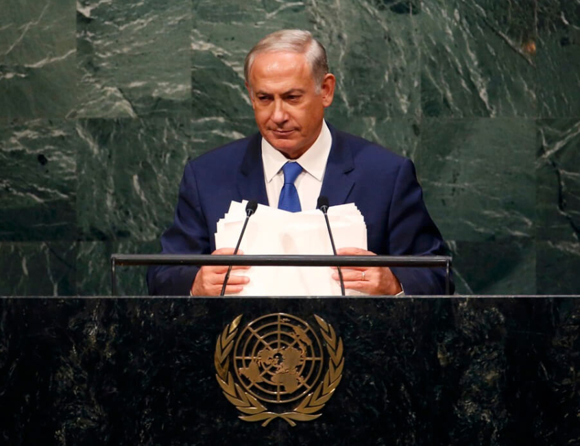 Israeli Prime Minister Benjamin Netanyahu made a dramatic address before the United Nations General Assembly on Thursday, pausing in his speech for 45 seconds to denounce the world's "utter silence, deafening silence" on Iran's threats to destroy his nation.