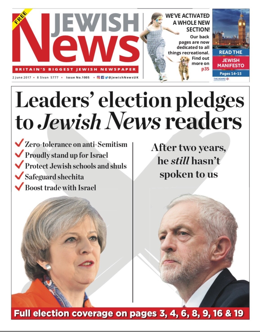 A poll last week revealed Theresa May held a 64-point gap over Corbyn among Jewish voters with just 13 per cent backing the Labour leader.