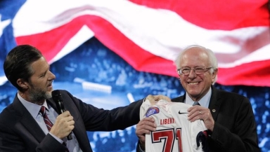 Falwell caused outrage with his address to students, in which he implied that he had a gun in his own pocket and said of Muslim extremists, "let's teach them a lesson if they ever show up here".