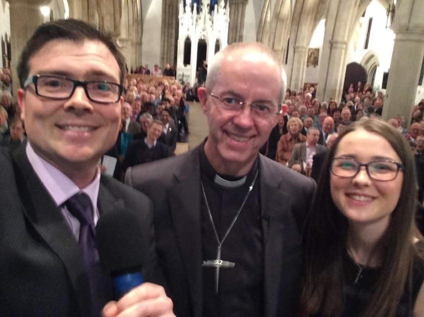 Welby posed for a selfie with the eighteen-year-old co-host Ellis Jones during the commissioning service in front of the 600-strong congregation at St Mary's church, Luton.