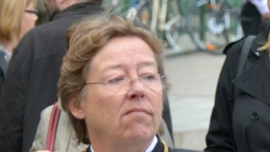 The world's first lesbian bishop of a major Christian denomination, Eva Brunne of the Lutheran Church of Sweden is calling for the removal of the crosses and other Christian symbols at the Seamen's Church in Freeport so that visiting foreign sailors practicing other religions like Islam "would not be offended."