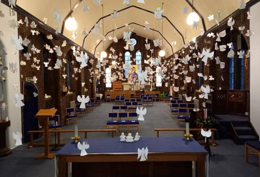 Made with the help of pupils from St Philip's School, there are over 800 paper angels inside the church. Another hundred knitted angels have been sent out to three local care homes.