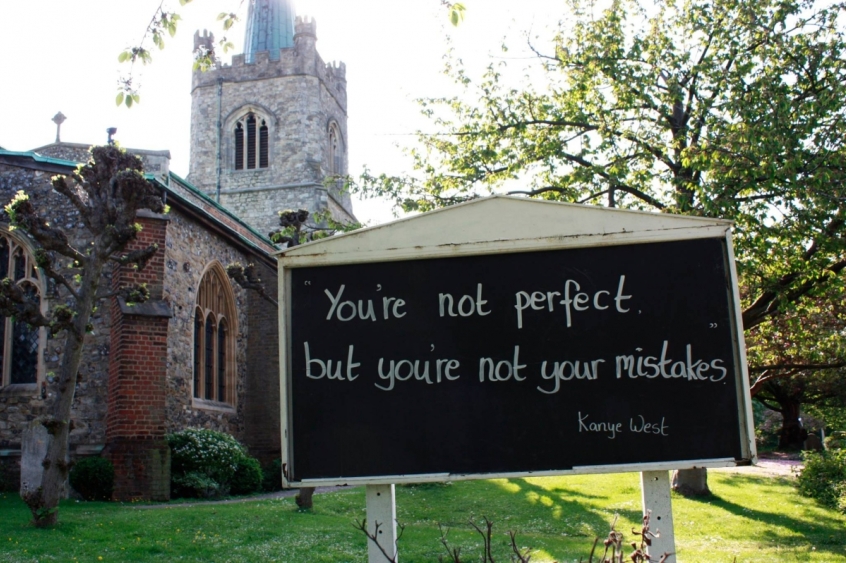 "You're not perfect, but you're not your mistakes," reads the recent quote posted outside St. Andrew's Church in Hornchurch, London, according to Christian News.