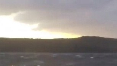 Shocking video footage shot by a bystander shows the boat becoming increasingly submerged as it is lashed repeatedly by waves during a storm.