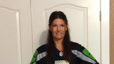 Kristi Merritt posted a series of images on her Facebook page on April 12, one of them showing her dressed as a football player holding a sign that read, "Does this make me Russell Wilson?" LifeSite News reports.