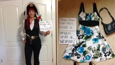 She also posted a photo of herself dressed as a pirate holding a sign asking, "Does this make me a pirate?"