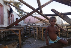 On Sunday, survivors wandered the streets clutching flimsy bed rolls and blankets, while others sat in the street cradling their children, surrounded by a few plastic bags of belongings.