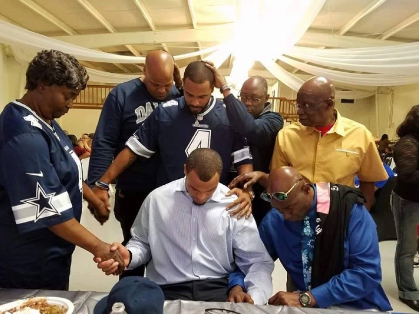 Rising NFL star Dak Prescott was snapped in a photo praying with a group of people, and it was a side of him that Dallas Cowboys fans really welcomed.