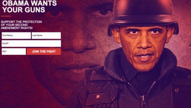 The most robust response came from another leading contender for the Republican nomination, evangelical Ted Cruz, who placed an image on his donations website showing a Photoshopped Obama wearing combat gear with the caption: "Obama wants your guns. Support the protection of your Second Amendment rights!"