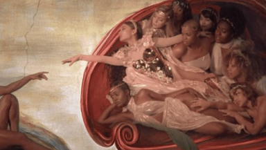 In her music video for 'God is a Woman,' Grande played the part of God in her own feminist re-creation of Michelangelo's Creation of Adam. Madonna then speaks as God in a brief cameo in which she quotes Ezekiel 25:17.