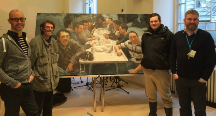 Arthur, a client of the mission, depicted in the painting, said "it's highlighting the City Mission – the work it does and the relationship that the guys who use it build up. The new last supper, I like that."