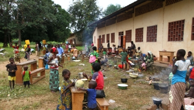 In this Sunday, Sept. 15, 2013 photo, civilians fleeing violent attacks by armed rebels seek refuge in the yard of a church in Bossangoa, Central African Republic. (AP)
