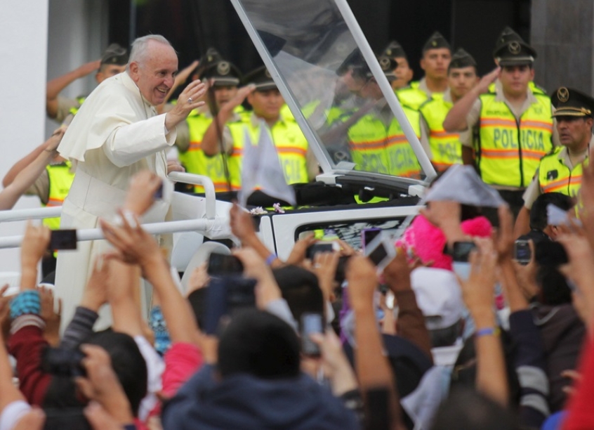 After receiving a warm welcome from Ecuadorian President Rafael Correa, Francis asked Catholic believers in Ecuador never to lose their ability to "thank God for what He has done and is doing for you."