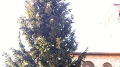 Pope Francis on Sunday lit the Christmas tree and Nativity scene at the Basilica of St Francis in Assisi, which was built within a boat used by migrants to travel across the Mediterranean last year.