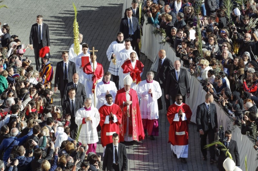 Thousands of people, including the 78-year-old Argentine pope and prelates dressed in red vestments, carried palm fronds and branches in St Peter's Square on the day that marks the start of Holy Week, which ends on Easter Sunday.