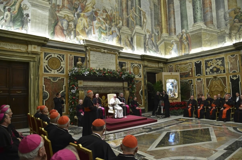 At the same gathering last year he issued a stinging criticism of the Curia, listing a catalogue of "diseases" in the bureaucracy including careerism, scheming and greed that had infected them with "spiritual Alzheimer's".