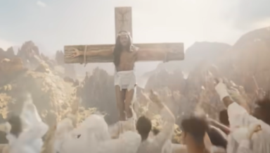 The video cited 2 Corinthians 5:17 and depicted the openly gay rapper on a cross. Some of the scenes also appropriated biblical imagery including Jacob's Ladder and Noah's Flood.