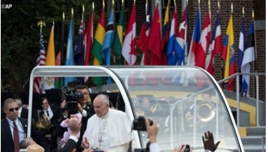 Speaking at the lectern used by Abraham Lincoln to deliver his Gettysburg address, Pope Francis said: "The Declaration of Independence stated that all men and women are created equal, that they are endowed by their Creator with certain inalienable rights, and that governments exist to protect and defend those rights. Those ringing words continue to inspire us today, even as they have inspired peoples throughout the world to fight for the freedom to live in accordance with their dignity."