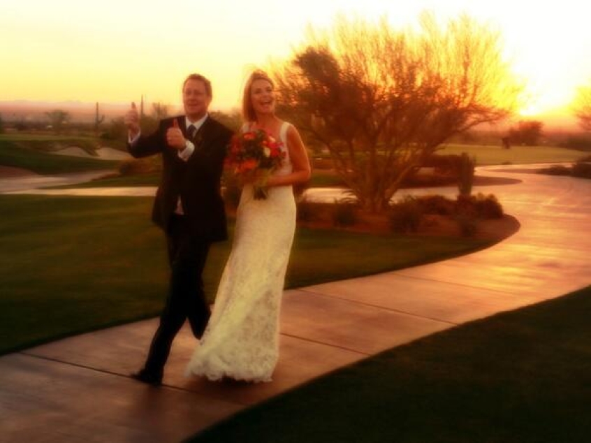 Guthrie wore a Monique Lhuillier gown for the wedding, which took place in the middle of the desert. She was walked down the aisle by her brother Camron Guthrie.