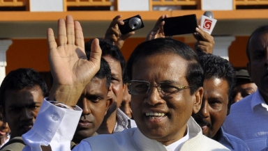 Sirisena, a soft-spoken 63-year-old from the rice-growing hinterlands of this Indian Ocean island state, is expected to be sworn in at Colombo's Independence Square at 6:00 pm. local time (12.30 pm BST).