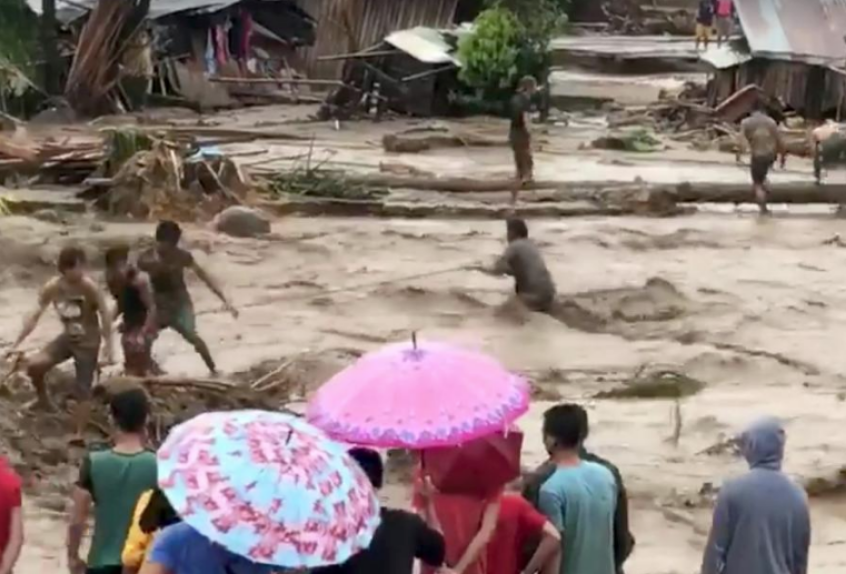A tropical storm in the Philippines triggered mudslides and flooding that killed nearly 90 people, while dozens are missing, police and disaster officials said on Saturday.