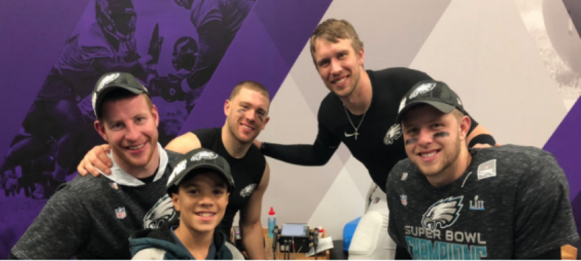 Philadelphia Eagles quarterbacks Nick Foles, Carson Wentz and Nate Sudfeld took time away from Super Bowl LII celebrations to pray with their tight end, Zach Ertz, after the big game Sunday night.
