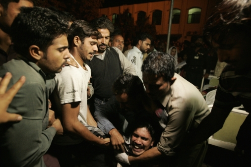 Pakistani police said they were investigating the attack and a doctor said up to 70 people had been wounded.