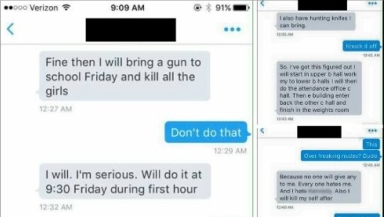 "[I'm] serious I have 12 gauge shotgun and a 9mm pistol I will bring and start killing everyone. I also have hunting knives I can bring," the suspect posted.