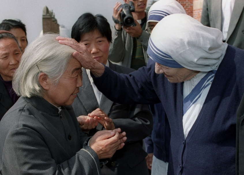 Mother Teresa blesses a catholic faithful outside Mary's Bascillica near Shanghai on October 23, 1993. Mother Teresa, during a five day visit to China, said she would like to open a mission to help the poor in Shanghai.