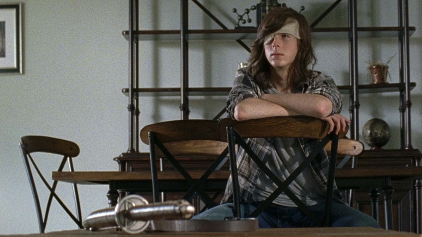 And right on cue, Negan's right-hand man Simon (Steven Ogg) and several other Saviors arrive at Hilltop to collect their half of the supplies. Gregory must have pissed his pants when Simon told him they needed to discuss something. Meanwhile, Sasha (Sonequa Martin-Green) and Jesus (Tom Payne) appear to be hiding indoors while the Saviors are busy terrorizing the residents of the colony.