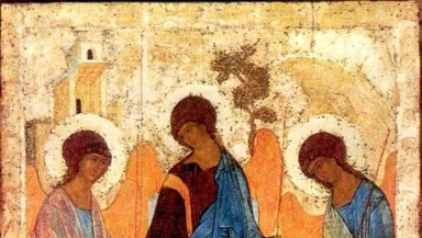 In a way it's a relatively simple concept. One God, three persons. Yet it is impossible to fully understand. Instead, we are called to enter into the life of the Trinity and then we will experience it. One of the historic ways in which the Church has done this is through the famous Rublev icon of the Trinity. The three persons of the Trinity are seated at a a table. Because of the angle at which the viewer is seeing the scene, she is invited to join the Trinity at the table.