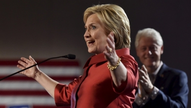 "Some may have doubted us but we never doubted each other, and this one's for you," Clinton told supporters at Caesars Palace in Las Vegas.