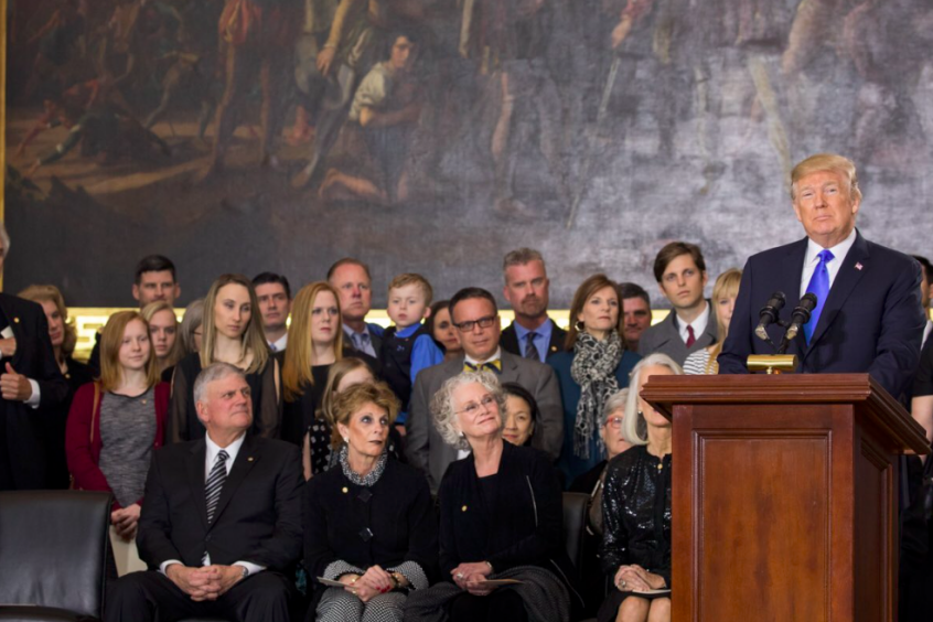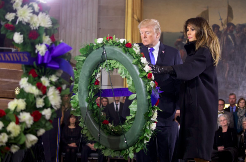 Trump laid a wreath at the coffin of Billy Graham, who is thought to have preached to more than 210 million people over the course of his life and developed close relationships with presidents since Harry Truman.