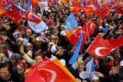 But across the Bosphorus in the city's Tophane district, an AKP stronghold, teenagers with drums paraded in celebration. Cars honked their horns as passengers waved AKP flags.