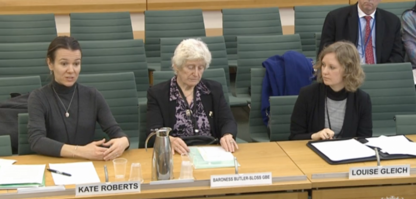She joined the independent peer Butler-Sloss and Kate Roberts from the Human Trafficking Foundation in giving evidence to the work and pensions select committee on Wednesday morning.