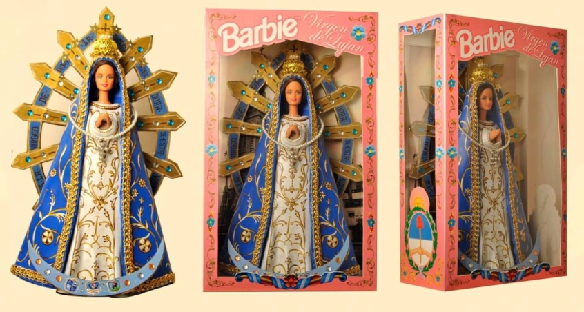 Pool Paolini and Perelli, artists from Rosario, have dressed Barbie as 10 patron Saints of South American countries and used 15 Kens to show "15 ways of looking at Christ."