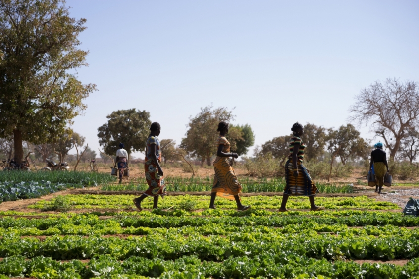 Market gardening is another area where development groups are trying to prioritise access for women. The work is hard: they are battling to produce beautifully green salad in incredibly dry soil, so each row of plants has to be watered several times a day. And there isn't a hosepipe or sprinkler system.