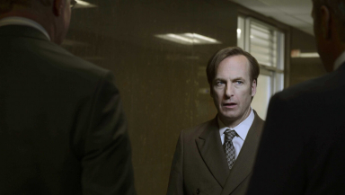 At first glance, the second still image seems to just focus on Jimmy McGill but upon closer inspection, it is obvious that he is being backed to a wall by two unidentified men. According to a report from Collider, these two could be anyone, from hired mobsters to government officials and possible clients.