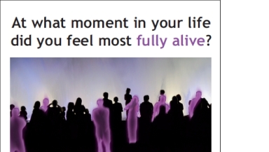 The postcards ask the question 'At what moment in your life did you feel most fully alive?'. On the reverse is the challenge: 'It's time you found out what Jesus said about life in his own words.'