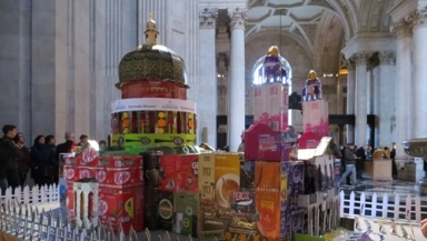 A model of St Paul's made entirely from the packaging of fairtrade products was unveiled in the famous cathedral on Monday for Fairtrade Fortnight.