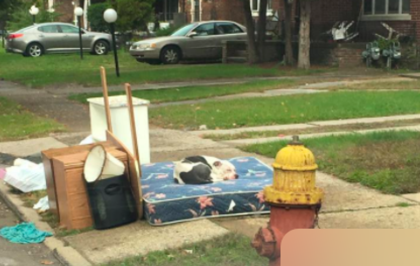 The dog and his former family came from Detroit. The pit bull did not budge from his old curb for a month — sleeping on the family's former mattress and cozying up to old trash bins and boxes. He remained put until Dustin Oliver, founder of Detroit Youth and Dog Rescue, got a tip about the canine.