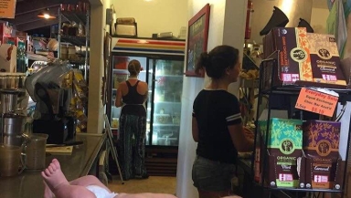 She shared a funny photo of Tobias who is seen lying on top of a grocery weighing scale on her Instagram account (@bethanyhamilton). "'Momma says I'm growing too fast!" Thank you Healthy Hut for the weigh in," she captioned it.