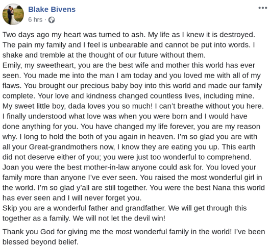 Despite the heartwrenching loss, Bivens still thanked God and said he was trusting in His plan.