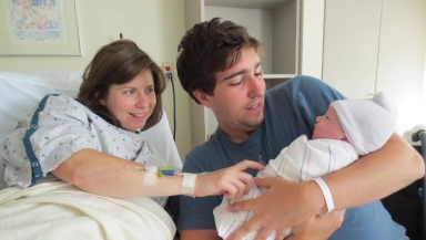 "Everyone is happy and healthy!" the couple wrote on their Facebook page. They included a photo of a smiling Erin, still in her hospital bed, and Bauman holding the baby in his wheelchair.