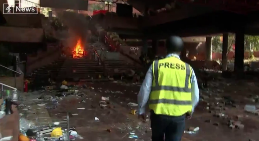 "A bloodbath on a Hong Kong campus would be devastating for Hong Kong as a whole. I also urge those students who have engaged in violence to stop. I condemn violence on all sides and I call on both sides to show restraint and pull back from the brink."