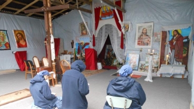 French nuns prayed in the Church of St Michael in the Calais jungle. Fr Dominic Howarth